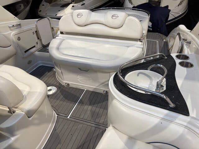 In zeer nette staat verkerende ruime Crownline 315 sportcruiser met 2x Mercruiser 350 Magnum MPI, 300 pk, Bravo III.