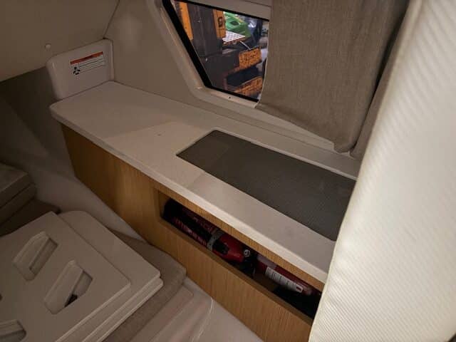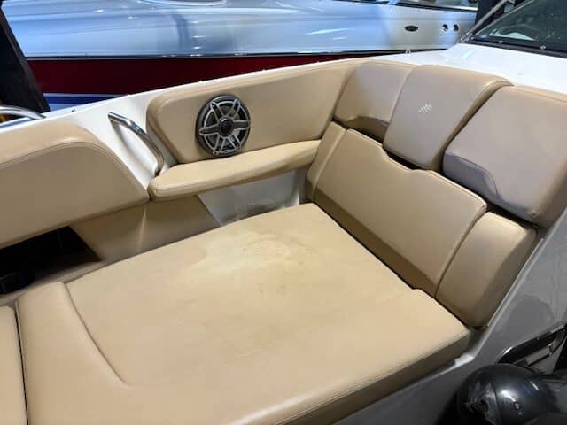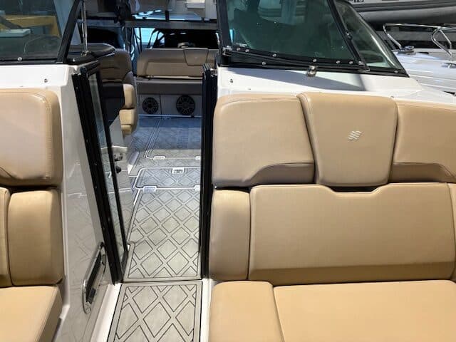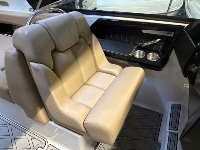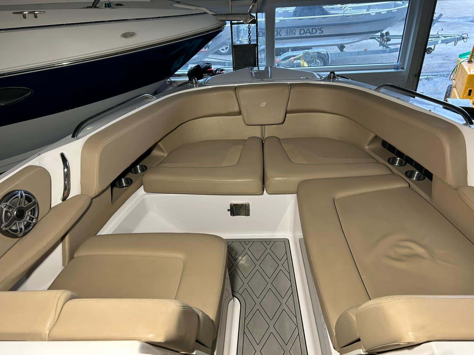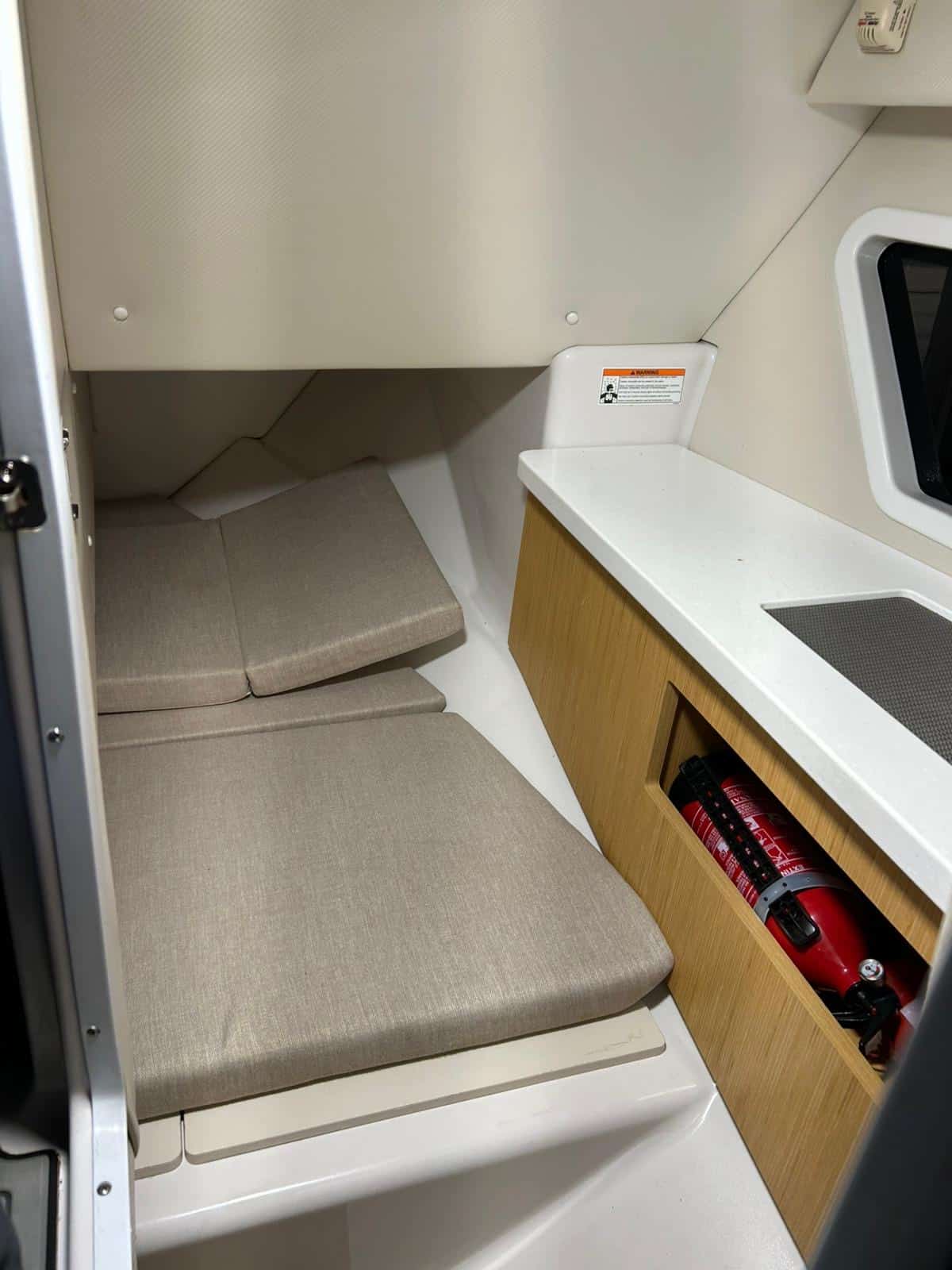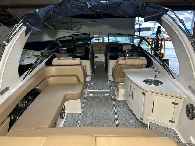 De slimme indeling van deze zeer grote bow rider geeft de boot een kleine kajuit waar je in kan overnachten