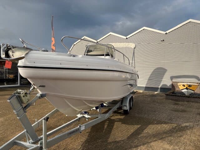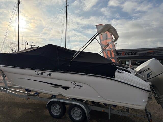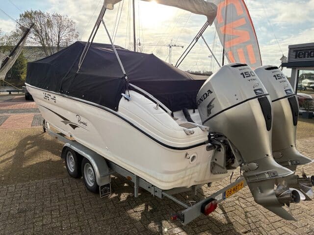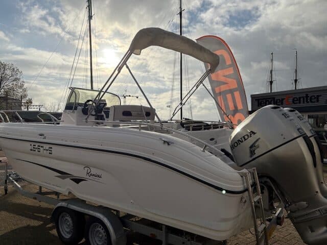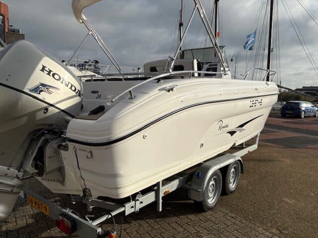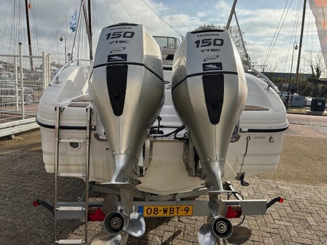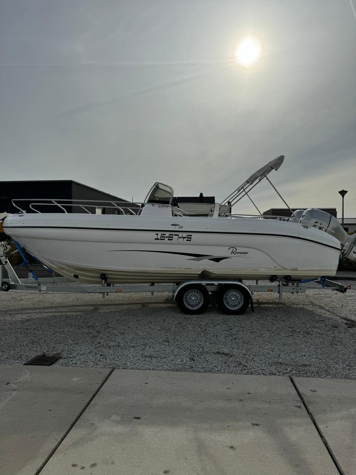 Deze fantastische en zeer nette Ranieri 24 Console boot met 2x Honda BF150 pk buiten boord motoren.
