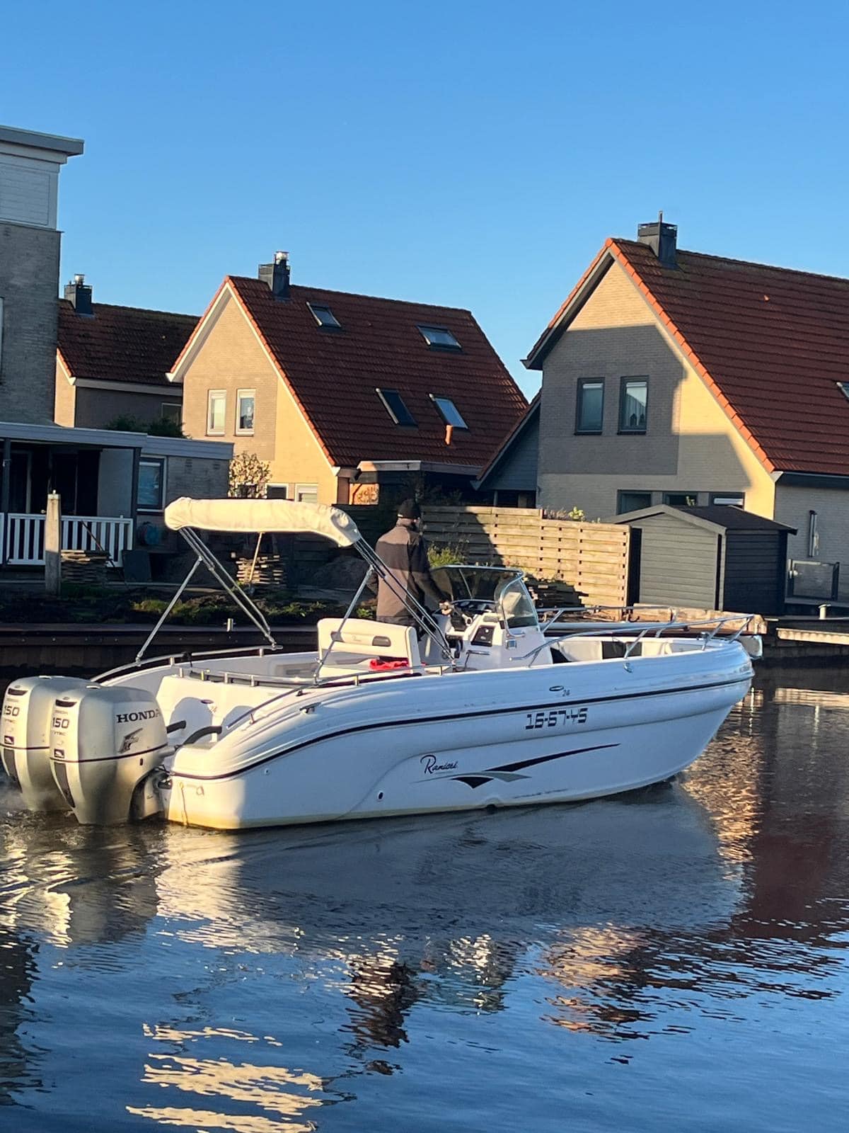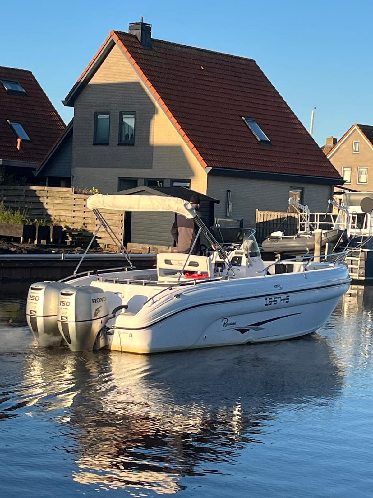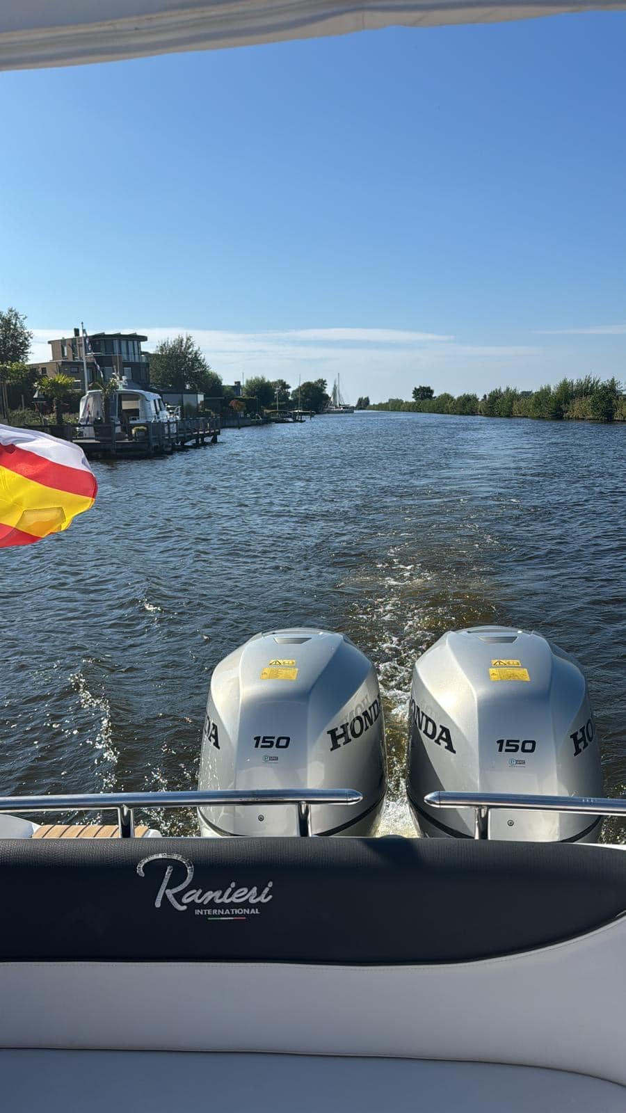 Deze fantastische en zeer nette Ranieri 24 Console boot met 2x Honda BF150 pk buiten boord motoren.
