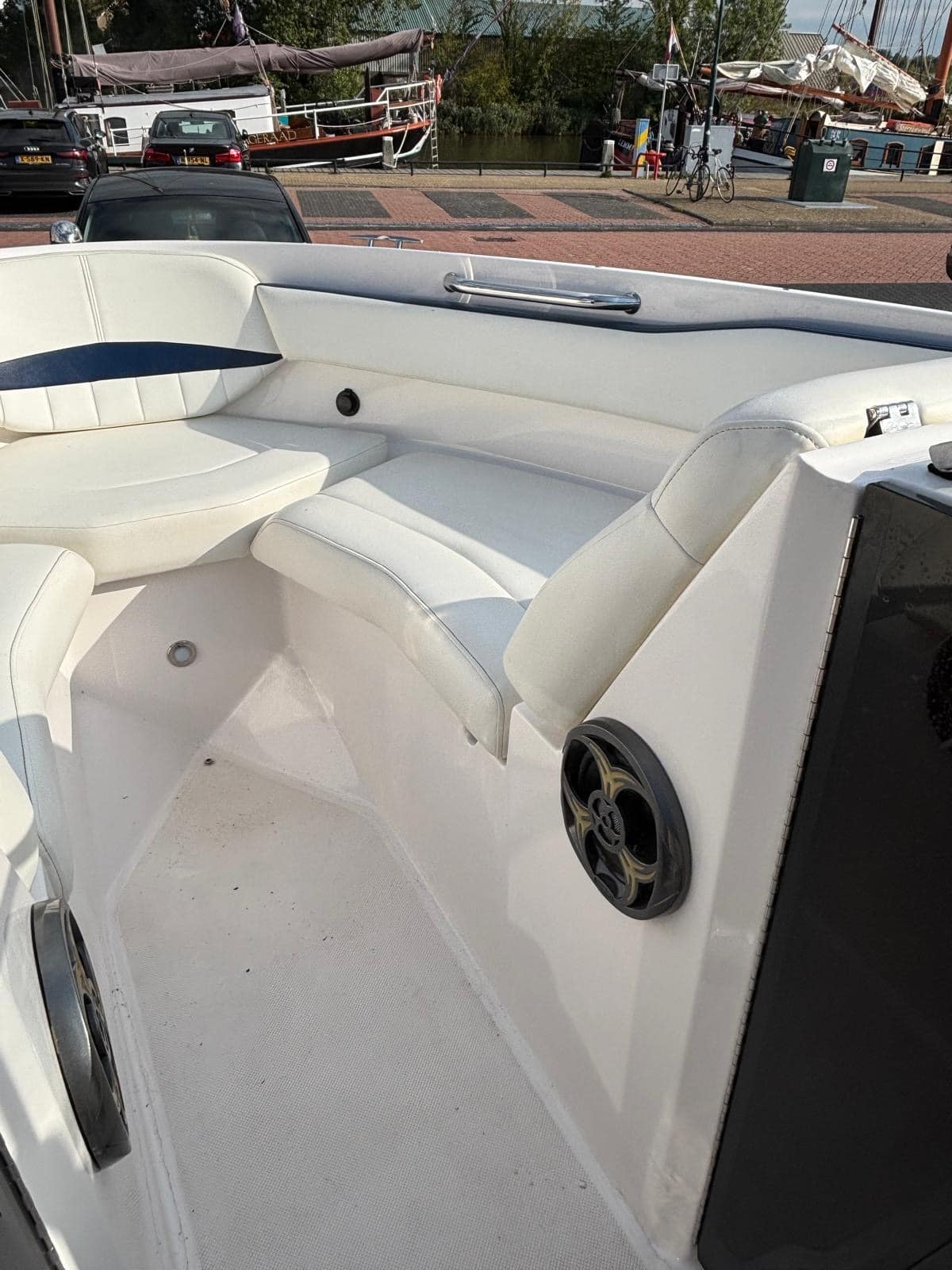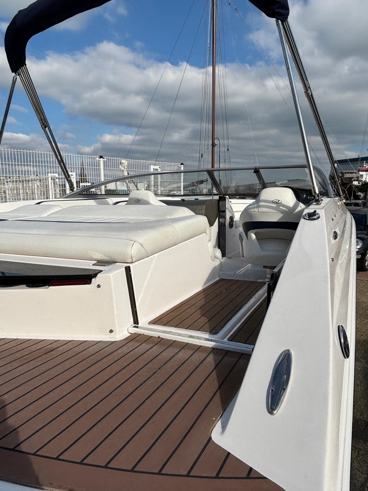 Voorzien van vele opties: Boeg en kuipkleed, bimini, stereo, flexiteek op zwemplatform en in doorloop,